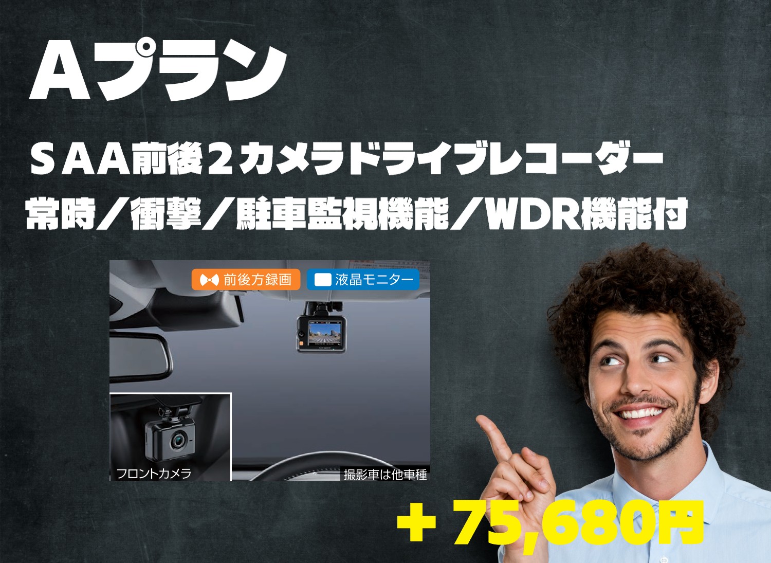 | 補足 | --- | 昨今、非常に需要が伸びてきましたドライブレコーダー。不意の事故もきちっと記録してくれます。GPS&Gセンサー搭載。クルマへの衝撃や振動で録画が始まります。駐車監視システム搭載。※価格は前後タイプの総額です。 | おクルマの「輝き」「傷からの保護」「撥水効果」を長期間、良好に保ちます。保守状況や駐車場の状況にもよりますが3年から5年の効果を持続させます。気持ちよくおクルマを維持したい方に大好評です。 |