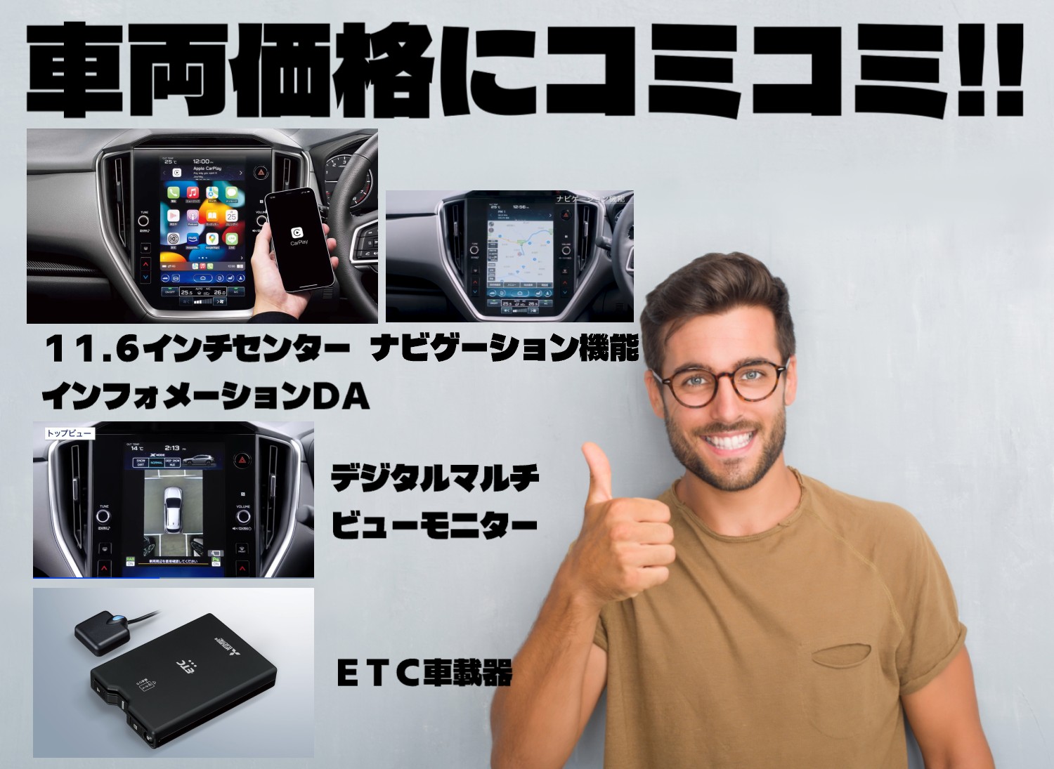 | 補足 | --- | 昨今、非常に需要が伸びてきましたドライブレコーダー。不意の事故もきちっと記録してくれます。GPS&Gセンサー搭載。クルマへの衝撃や振動で録画が始まります。駐車監視システム搭載。※価格は前後タイプの総額です。 | おクルマの「輝き」「傷からの保護」「撥水効果」を長期間、良好に保ちます。保守状況や駐車場の状況にもよりますが3年から5年の効果を持続させます。気持ちよくおクルマを維持したい方に大好評です。 |